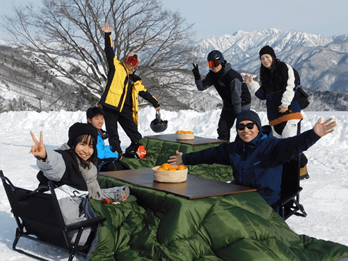 雪山のこたつで「ガツン、とみかん」!!