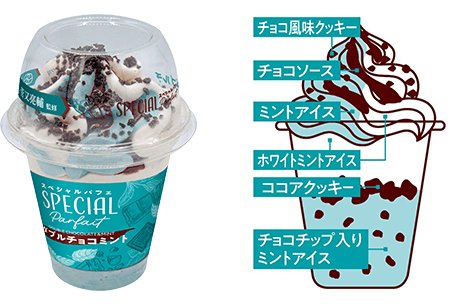 ・スペシャルパフェ 幸せのチョコバニラ、贅沢ストロベリー、トリプルクッキー&バニラ、ダブルチョコミント(各1個)