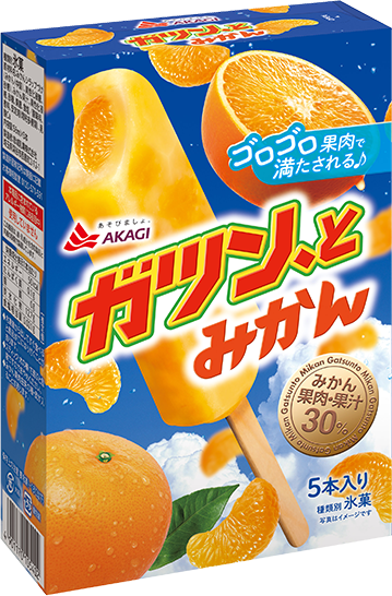 フルーティーなみかんアイスキャンディーにみかん果肉をガツン、と詰め込みました。
